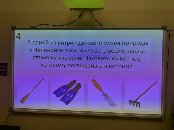 В качестве разминки учащимся было предложено семь вопросов. Первые 2 задания поставили учащихся в тупик, зато со следующими ребята легко справились! Особенно захотелось попасть в ресторан, один из вопросов был на логику и знания этикета. Также были задания на знание сказок, математических чертежных инструментов. В «Эрудит-лото» учащиеся увидели 4 картинки ребятам пришлось гораздо сложнее! Были вопросы из фильмов, песен и на общую эрудицию! Все сразу догадались, на что не стоит наступать, чтобы не повторился неудачный опыт. Зато в последнем конкурсе «Что? Где? Когда?», где были самые трудные вопросы, знания учеников и коллективное обсуждение привели к верным ответам! Особенно запомнился вопрос, какое животное умеет и плавать, и грести, и обрабатывать древесину! Знатоки математики справились и с этим вопросом: «Описывая цифру «7», в стихотворении «Весёлый счёт», Маршак упоминает инструмент. В каждом доме, где была печь, такой инструмент был обязательно. А сейчас он входит в набор для камина или мангала.»